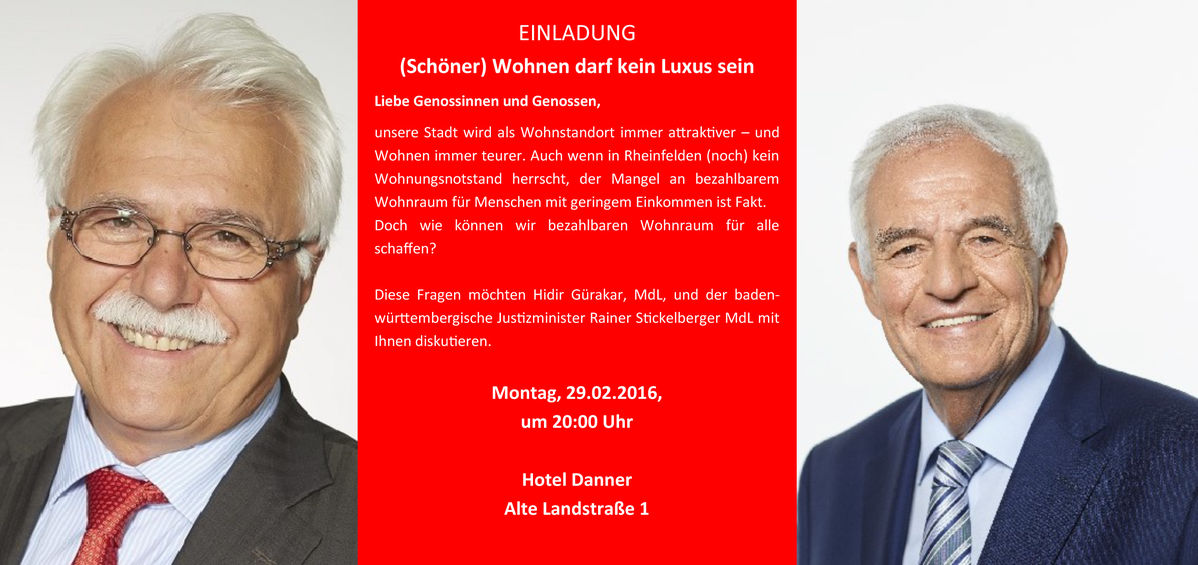 Hidir Gürakar hat eine Einladung für die Abendveranstaltung mit unserem Justizminister Rainer Stickelberger am 29.02.2016 um 20:00 Uhr im Hotel Danner in Rheinfelden (Baden) geschickt.