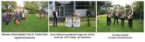 2 Ehrungen standen an: Albert Ganter für 50 Jahre und Dieter Krause für 40 Jahre Mitgliedschaft in der SPD. Die Ehrungen wurden von Rainer Stickelberger vorgenommen. Einer Pflicht der er sich gerne unterzog. Die Ehrungen hatten aber, wie er mir später sagte, für ihn etwas Neues: es waren die erste Ehrungen die Rainer Stickelberger als „Open Air Ehrung“ vornahm.