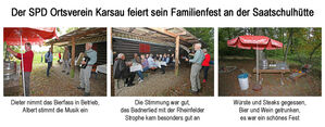 Der SPD Ortsverein Karsau feierte auch dieses Jahr sein Familienfest am 30. Sept. traditionell an der Saatschulhütte. Rita und Dieter Krause organisierten das leibliche Wohl, Grillwürste und Grillsteaks, und die Getränke. Ihnen dafür ein besonderes Lob und ganz herzlichen Dank. Und es gab auch Kaffee und Kuchen. Den Spendern Danke.