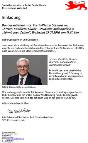Hidir Gürakar läd ein zu einer Veranstaltung am 5. März mit Nils Schmid. Er schreibt dazu: